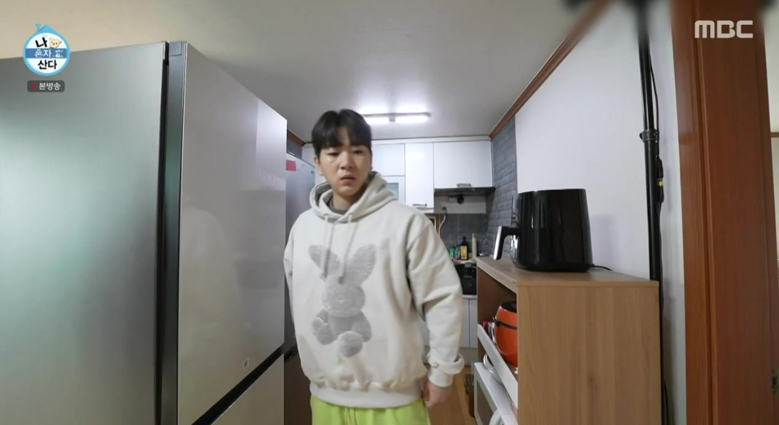 {후드티셔츠} 나 혼자 산다 490회 :: 이주승 / 아크메드드라비 그레이래빗 프린트 후드티셔츠